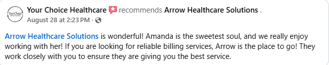 Arrow is owned by a Registered Nurse that understands the needs and struggles of medical offices. With extensive experience in the healthcare field, our services are tailored to address the unique challenges that healthcare professionals face. We providing support that fosters long-term improvement and efficiency within your practice.